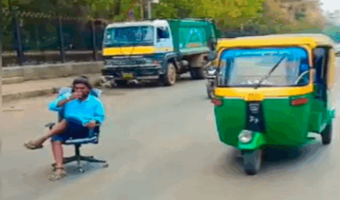 ವ್ಯಕ್ತಿ ಬೆಂಗಳೂರಿನ ಅತ್ಯಂತ ವಾಹನ ದಟ್ಟಣೆಯ ನಡುವೆ ರಸ್ತೆ ಮಧ್ಯೆ ಚೇರ್ ಹಾಕಿ ರೀಲ್ಸ್ ಮಾಡಿದ್ದಾನೆ. ಇದರಿಂದ ಸಾರ್ವಜನಿಕ ವಾಹನ ಸಂಚಾರಕ್ಕೆ ಅಡ್ಡಿ ಉಂಟು ಮಾಡಿ ನ್ಯೂಸ್ ಸೆನ್ಸ್ ಕ್ರಿಯೆಟ್ ಮಾಡಿದ್ದಾರೆ.
