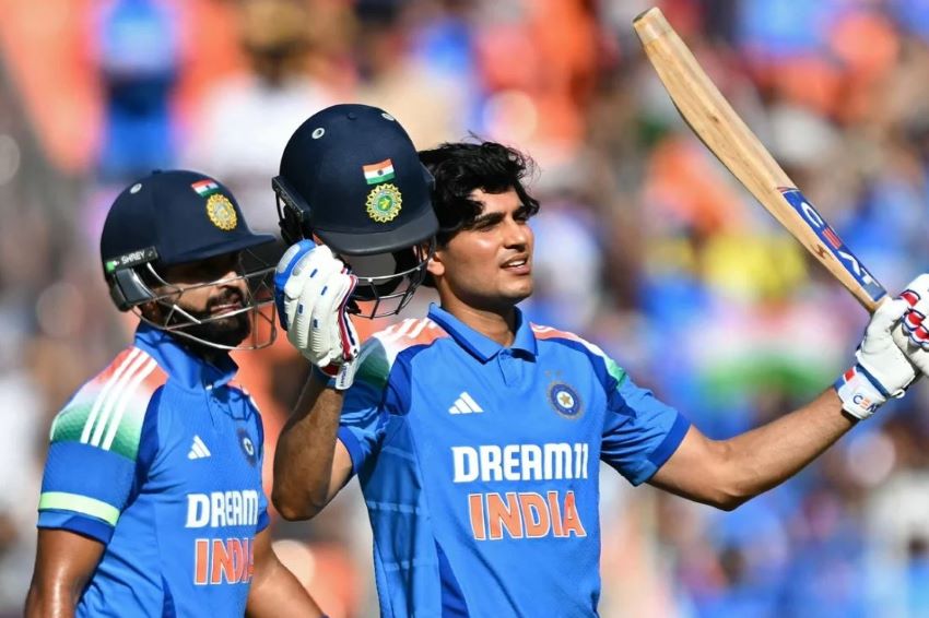 ಒಂದೆಡೆ ತಾಳ್ಮೆಯಿಂದ ಇನಿಂಗ್ಸ್ ಕಟ್ಟಿದ ಗಿಲ್ 129 ಎಸೆತಗಳಲ್ಲಿ 9 ಬೌಂಡರಿ ಮತ್ತು 2 ಸಿಕ್ಸರ್ ಒಳಗೊಂಡ 101 ರನ್ ಬಾರಿಸಿದರು. ಈ ಮೂಲಕ ಐಸಿಸಿ ಟೂರ್ನಿಯಲ್ಲಿ ಚೊಚ್ಚಲ ಹಾಗೂ ಸತತ ಎರಡನೇ ಹಾಗೂ ಒಟ್ಟಾರೆ 8ನೇ ಶತಕದ ಸಾಧನೆ ಮಾಡಿ ಪಂದ್ಯದ ಪ್ರಮುಖ ಆಕರ್ಷಣೆಯಾದರು.